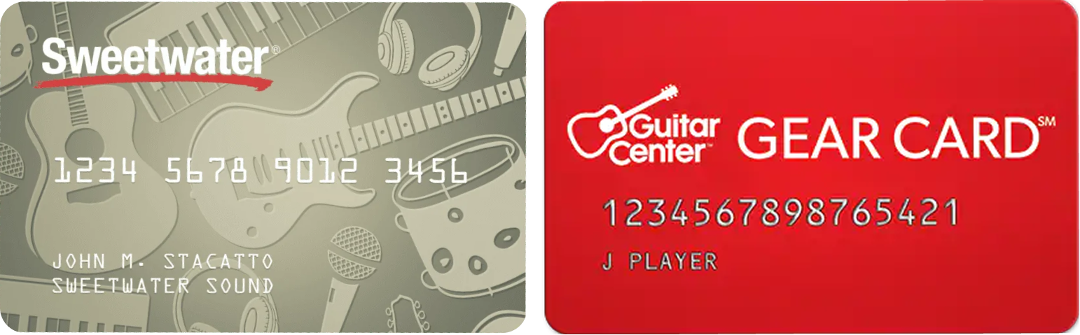If you shop for most of your music needs at Sweetwater Music or Guitar Center, you may consider one of these retailer-specific cards. These credit cards are not accepted at all music retailers in the locator. Learn more details below.